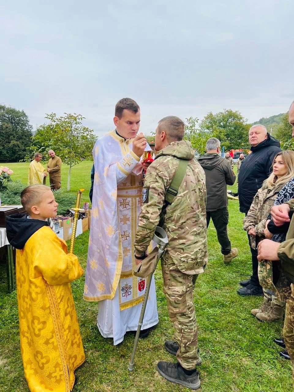 З цієї нагоди відбулася святкова Божественна Літургія, яку очолив та проповідь виголосив о. Іван Ісаєвич, військовий капелан, Голова департаменту війського капеланства Мукачівської греко-католицької єпархії. Йому співслужили: о. Лука Буняк, ЧСВВ, Ігумен Мукачівського монастиря, о. Теодор Станинець, Синкел у справах монашества МГКЄ, військові капелани та єпархіяльні священники.